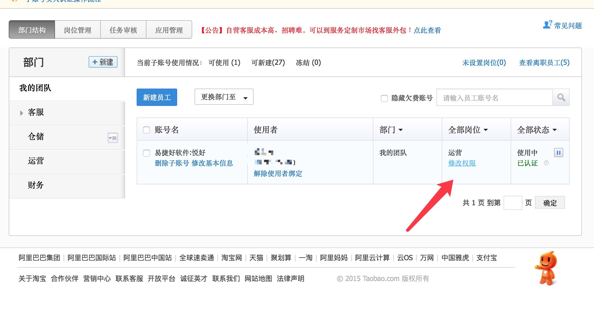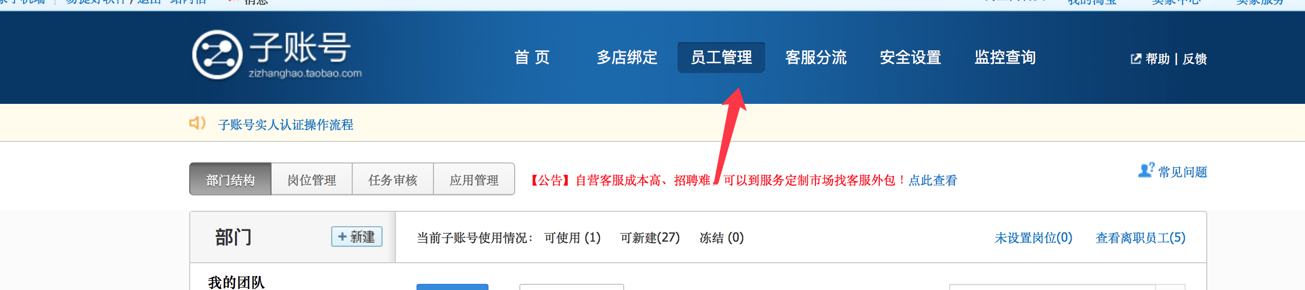 主账号登陆 http://zizhanghao.taobao.com 后台,找到